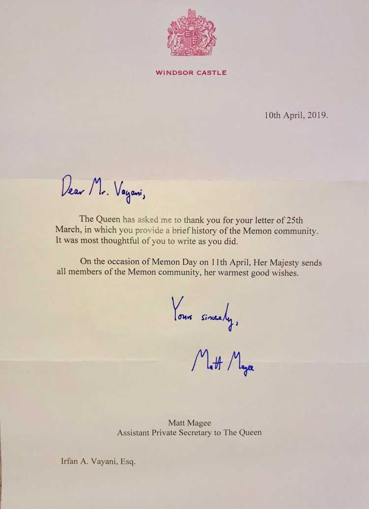 World Memon Day Wishes from Queen Elizabeth - UK